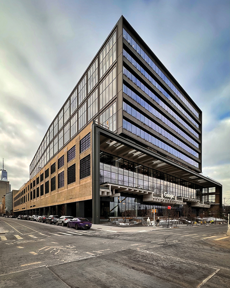 The redevelopment at 550 Washington Street of the former St. John’s Terminal, constructed in the 1930s, resulted in a new, high-performance health and wellness commercial office building, and is now the home of Google’s New York City headquarters. Its structure features an innovative first-of-its-kind application of precast segmental bridge design technique.